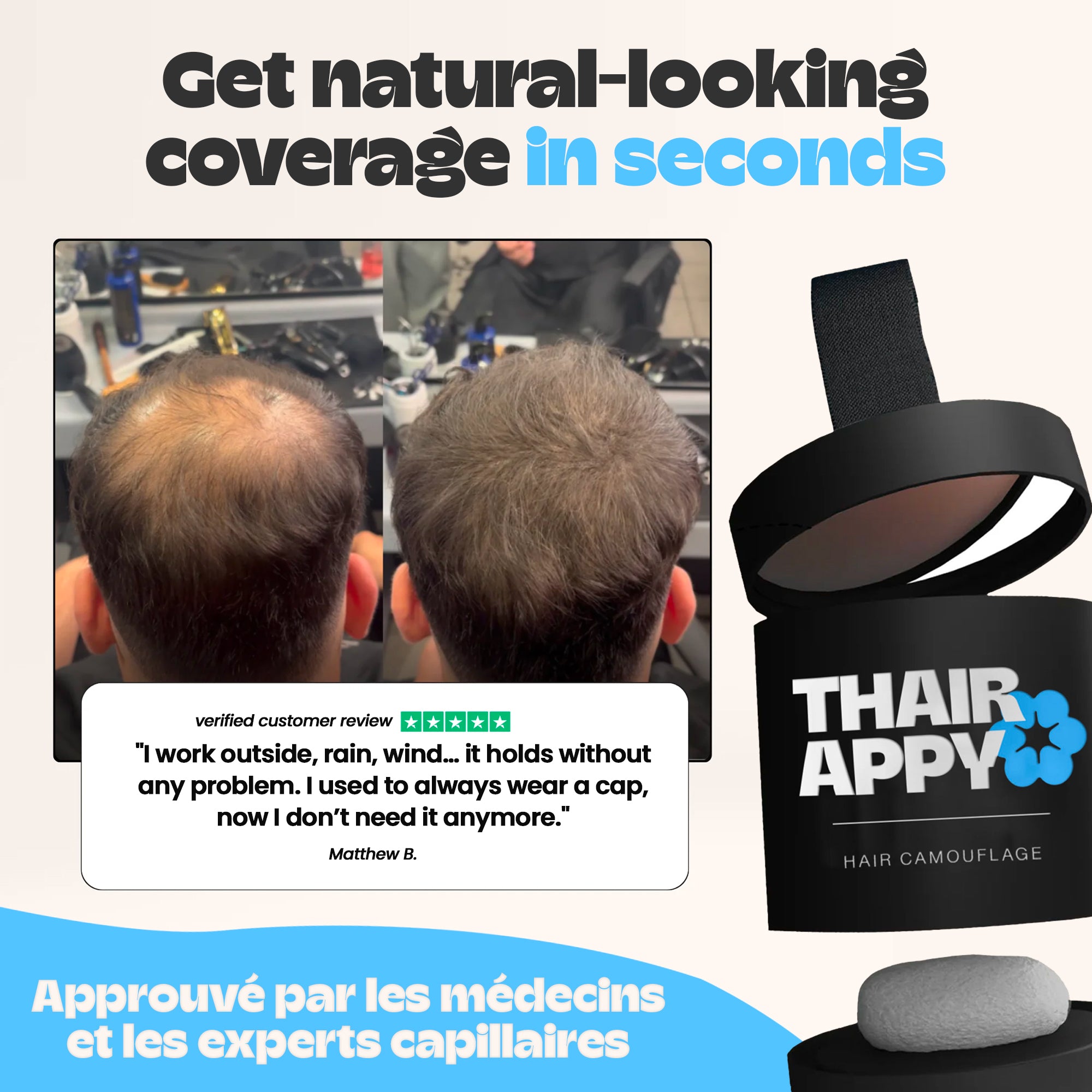 Even in areas that look bald, there are usually very fine or light hairs. The powder attaches to these tiny hairs to fill in the gaps and create a natural-looking density. Thatβs what allows for an even, seamless result, even with more advanced thinning.