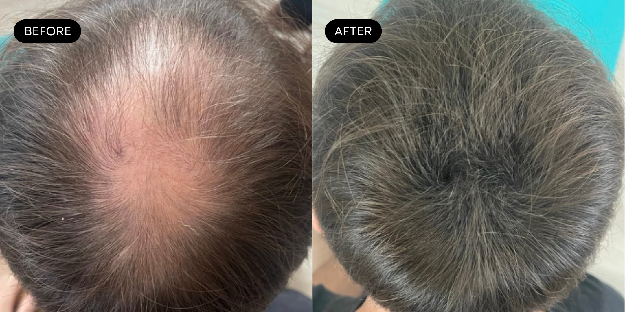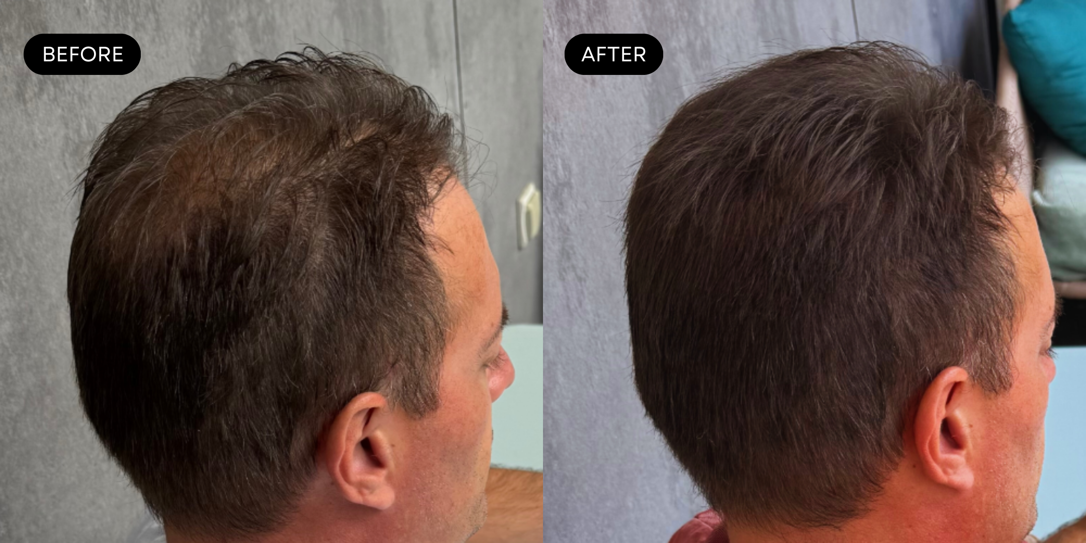 - Once thin hairs start coming back → the fibers instantly add density and coverage.
